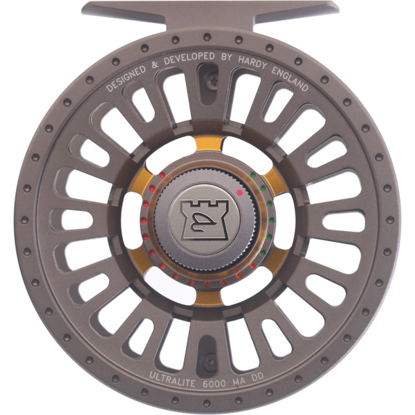 Hardy Ultralite MA reels are a full barstock 6061 construction with a stunning industrial design based on our class leading Ultralite CADD series , combined with an all new 360 degree colour coded drag system and a large capacity mid-arbour spool design.