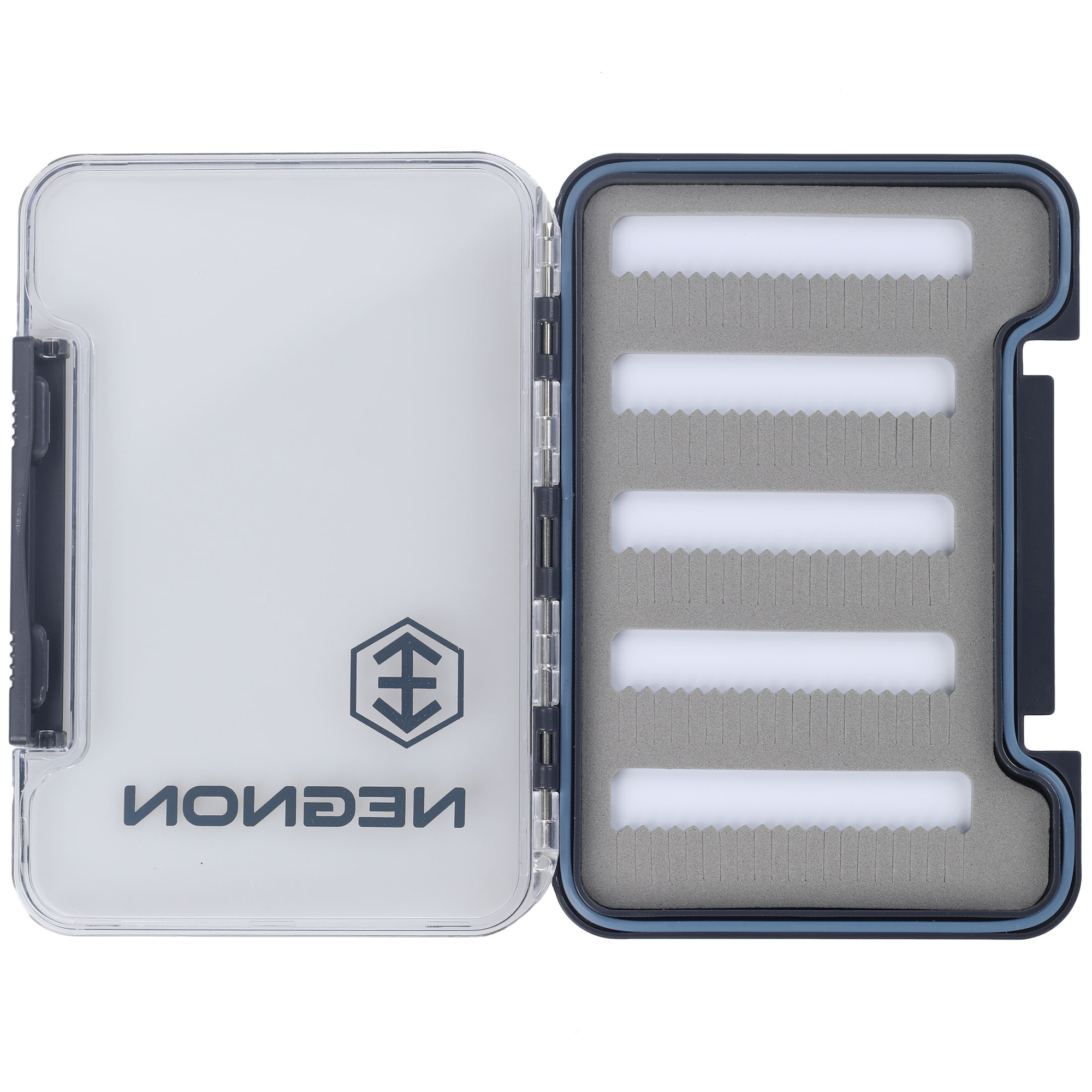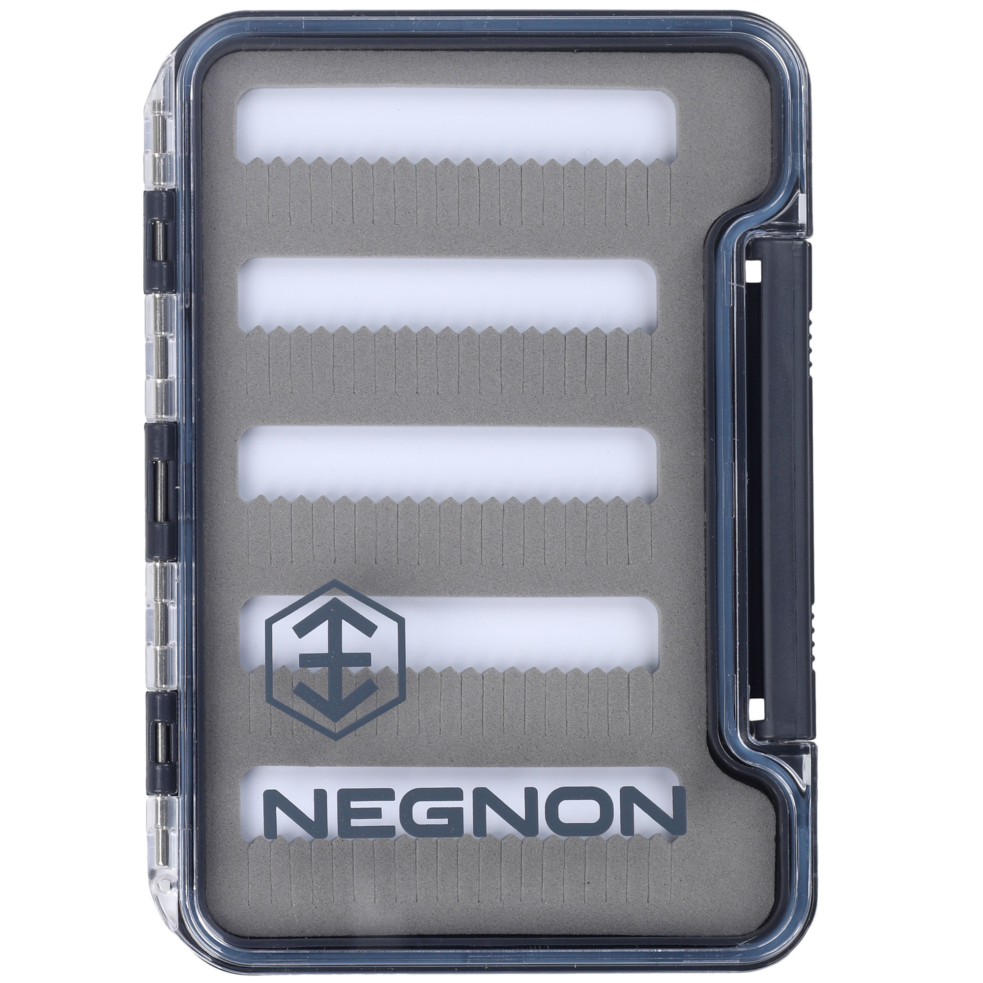 Negnon View Slim Fly Box - Medium is an excellent medium-sized box for nymphs and streamers, providing maximum protection for your flies. Equipped with a gasket, it ensures full waterproofness when closed. The transparent housing allows for a quick view of the contents without the need to open the box. A sturdy hinge and secure closure ensure durability and safe storage. Inside, there is foam for pinning flies, with cutouts available in various variants. Choose the cutout variant that best suits your needs.