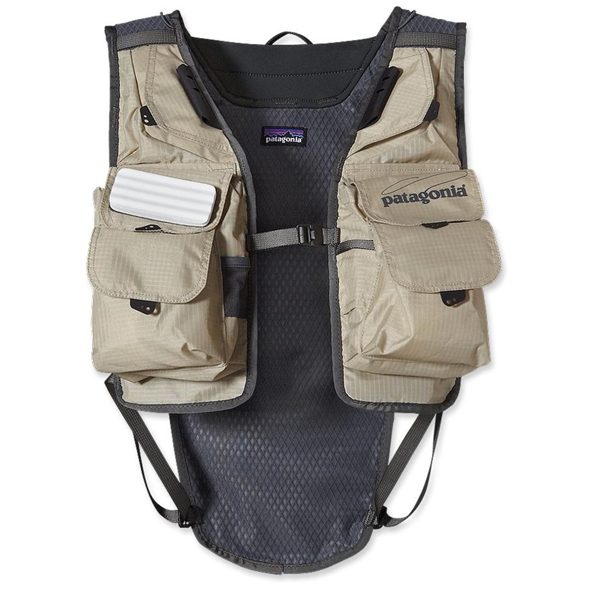 Details Polyester mesh ventilates in hot weather and won't absorb water in wet, cold conditions; 100% nylon pockets, with a DWR (durable water repellent) finish Vertical front zippered pocket provides low bulk storage and easy access Multiple interior zippered pockets carry tippet spools; car keys; hidden rod holder; large exterior storage pocket for jacket, lunch Nylon accessory holder; sunglasses loop; front D-rings allow for quick organizing Adjustable front and side closure allows for midlayers Body: 6.25-oz 100% double ripstop nylon with DWR (durable water repellent) finish. Mesh: 100% polyester 3-D spacer mesh 388 g (13.7 oz) Made in Vietnam.Do you need help? Do you have any questions?Ask a question and we'll respond promptly, publishing the most interesting questions and answers for others.