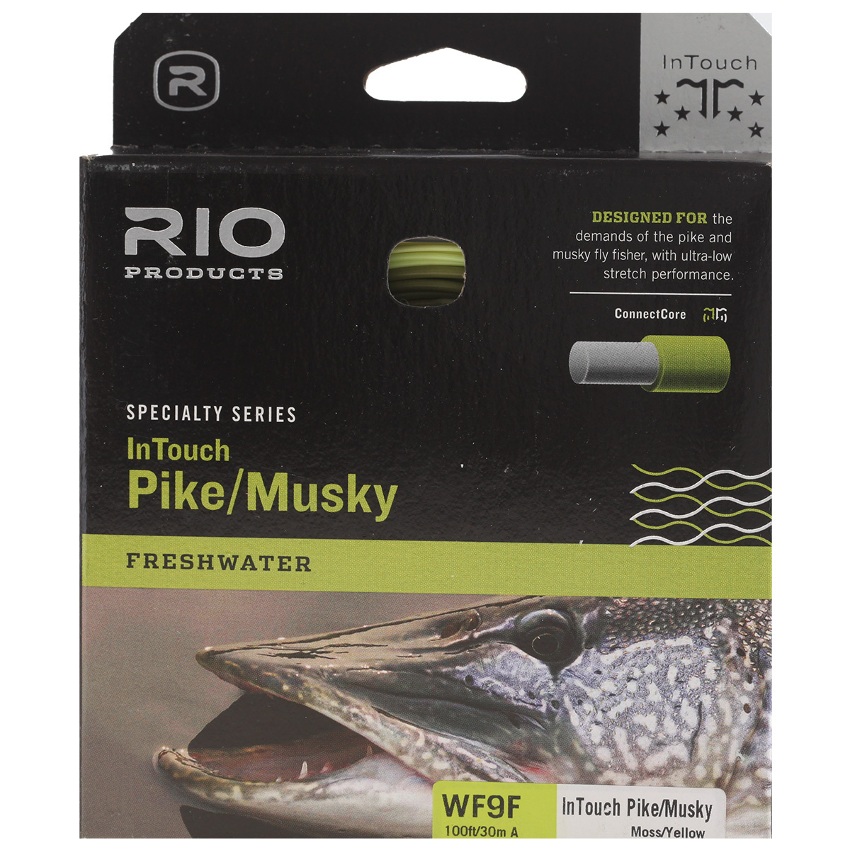 RIO’s InTouch Pike/Musky line has been specifically designed to meet the requirements of the modern pike and musky fly fisher. It features a short head and a powerful front taper that has no problem casting the biggest of streamers. The line is heavier than the industry standard to load powerful rods with ease, and is built with a supple, coldwater coating that features RIO’s XS and AgentX technologies for the very best in performance. A range of densities are available to cover a multitude of conditions. Built with ultra-low stretch ConnectCore Technology for the maximum in sensitivity, control and performance.