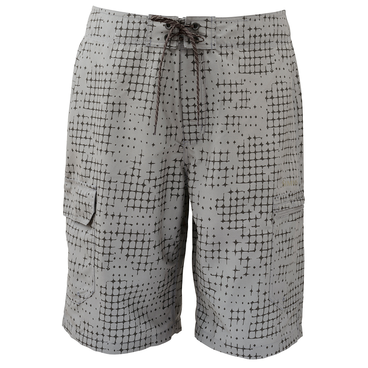 Simms Surf Short Cinder Catch PrintFor a laidback mix of beach hopping meets bonefish stalking, Simms’ multi-tasking Surf Short features simple styling, Traditional Fit, and just the right amount of tech to take your pursuits to the next level. Classic design elements include a gusseted front for free-flowing mobility, an adjustable waistband, a zippered fly box-friendly left leg pocket, and a copious right-leg cargo-style hold with a hook-and-loop closure. Plush microfiber poly fabric has a water-resistant finish that beads with aplomb, while inherent UPF50 sun protection keeps harmful UV rays at bay for all-day performance under an unflinching sun.