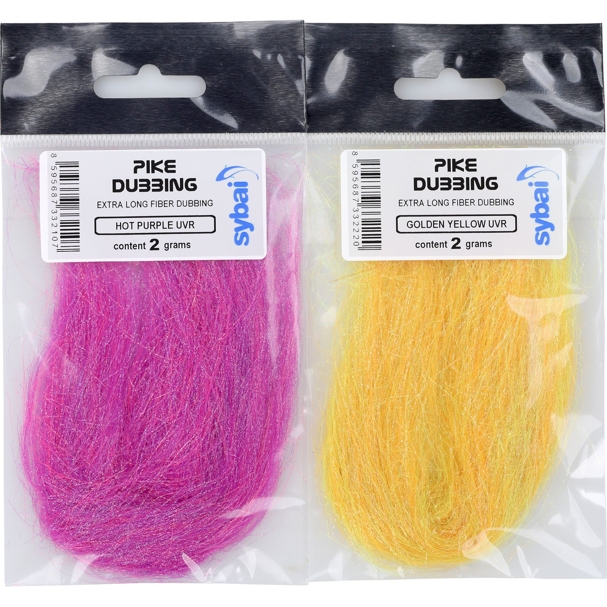 Discover Sybai Pike Dubbing – a unique dubbing with threads up to 100 mm long, perfect for tying pike flies and saltwater flies. It consists of fine crimped round fibers and flat crimped fibers that imitate small fish scales. Each color consists of several shades, and about 1/3 of the fibers reflect UV light. The overall impression is excellent. No added flash fibers, ideal for fly patterns for fishing in clear, transparent waters. A generous pack of 2 grams!