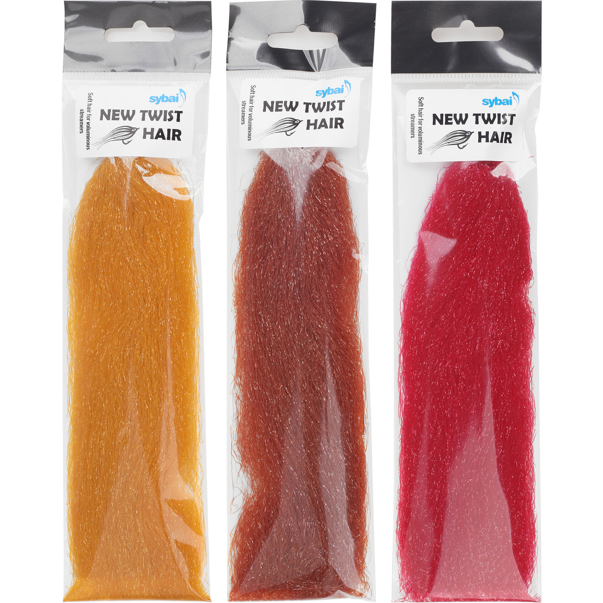 Fly tying hairs. Soft, braided fiber with silk glitter. Gives volume to streamer at low weight. Package contains 2100 pieces (700 x 3 braided). Length 350mm.