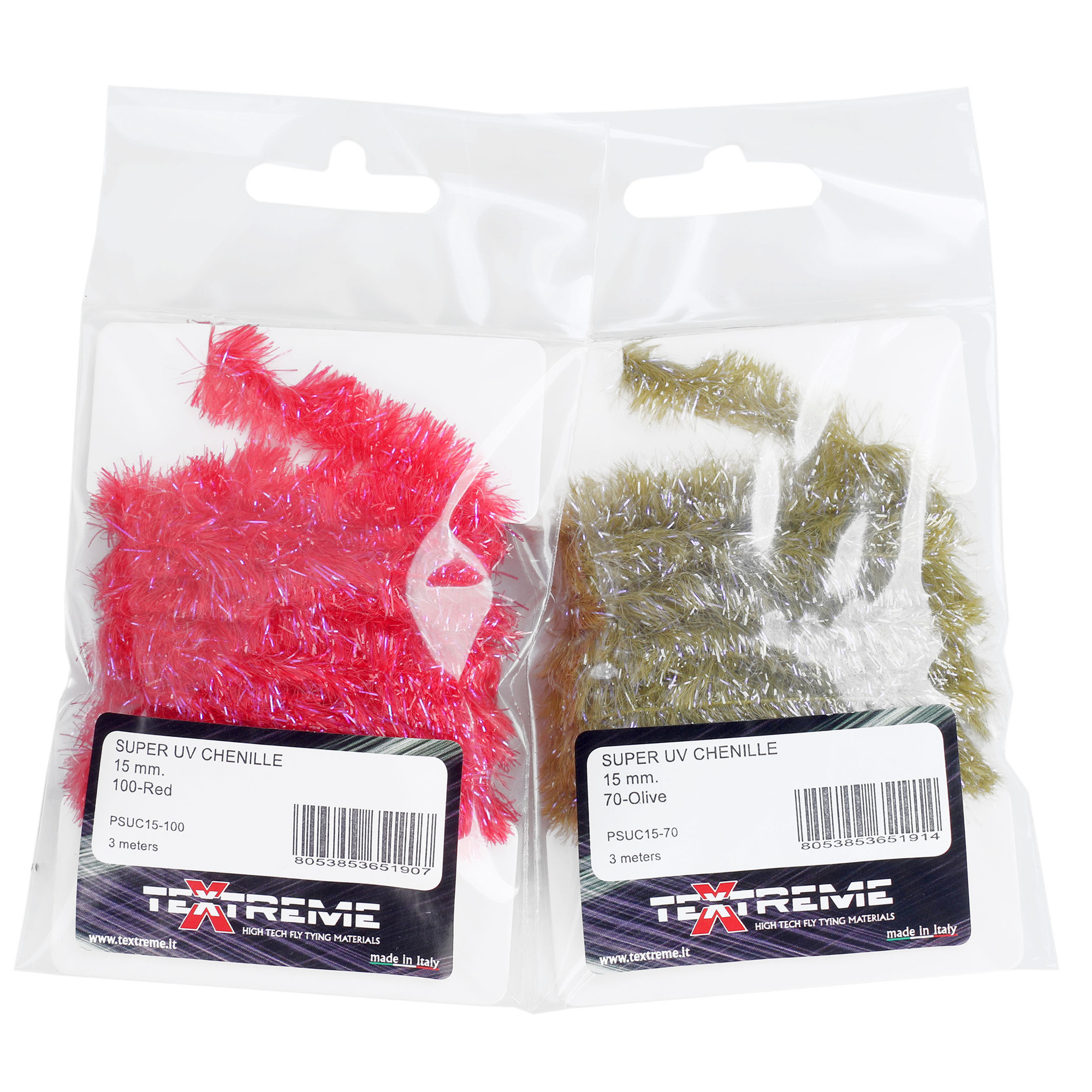 An extremely dense chenille made with a blend of translucent and ultraviolet fibres, which are perfectly anchored thanks to the use of special technological materials, thus preventing them from being lost during use. Although primarily designed for Blobs, is also suitable for streamer bodies.